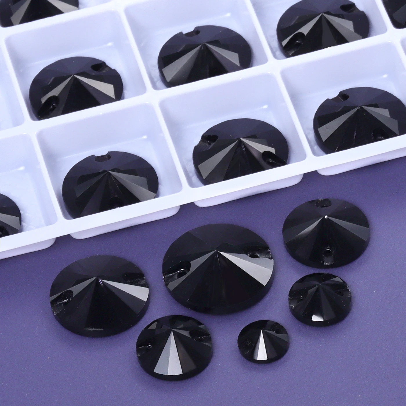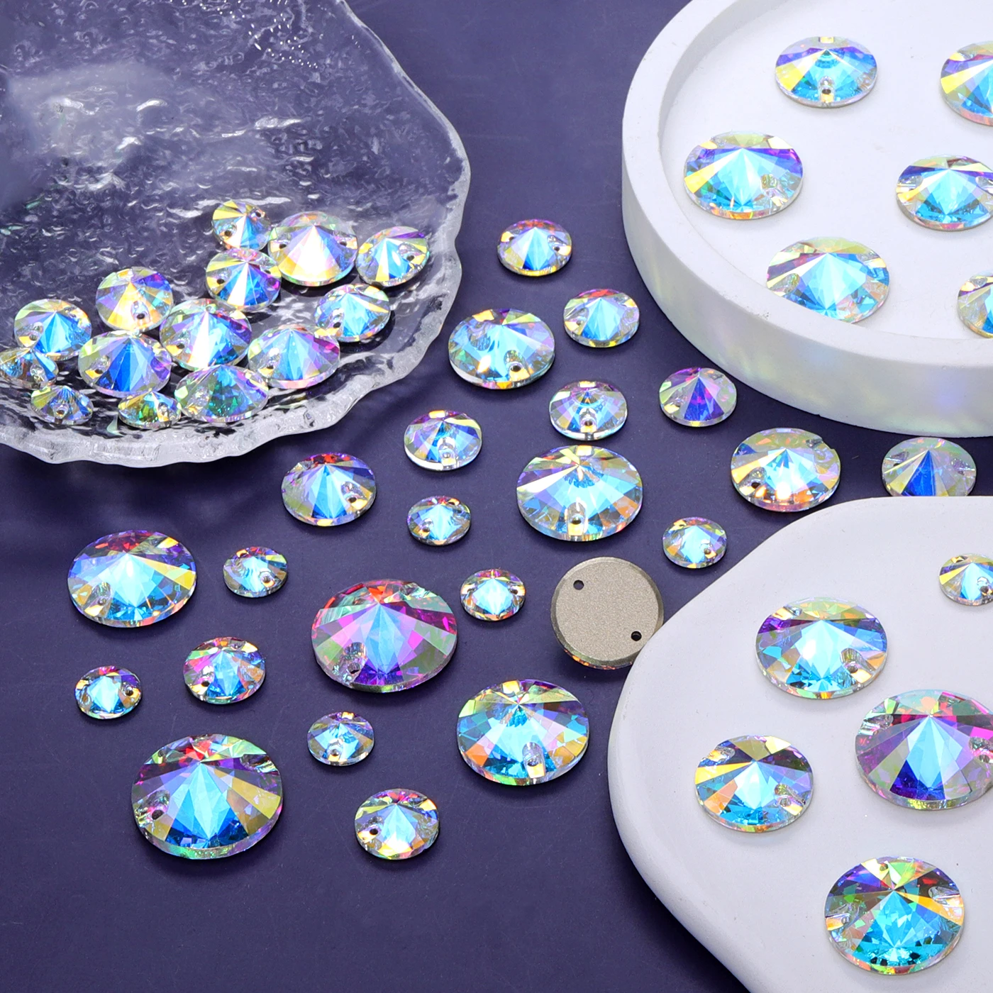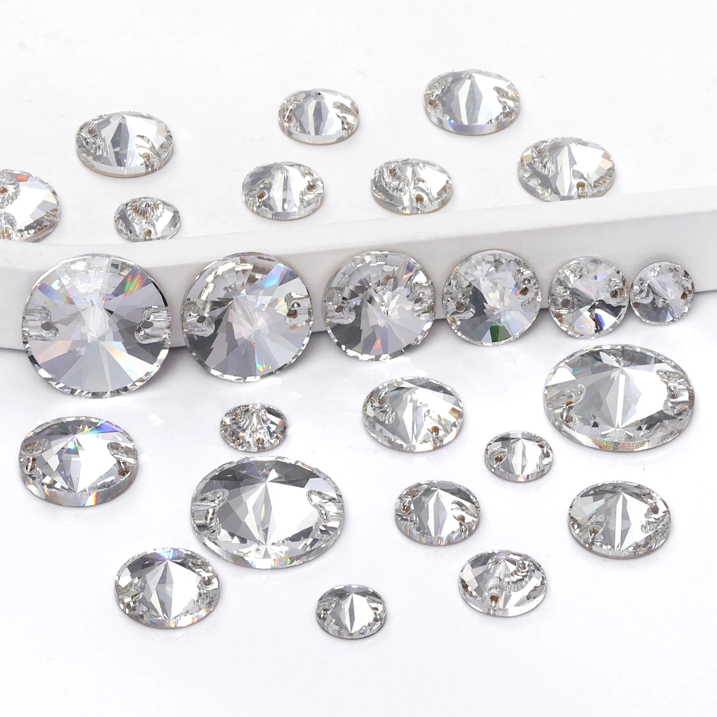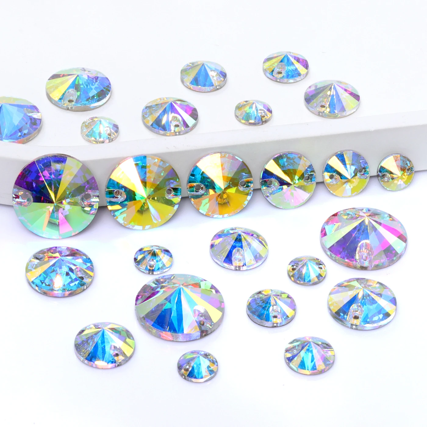 2025 Eco-Friendly Mixsize Rivoli Shape K9 Glass Crystal Rhinestones with Two Holes for Garment Accessories