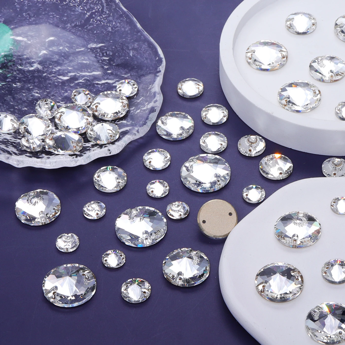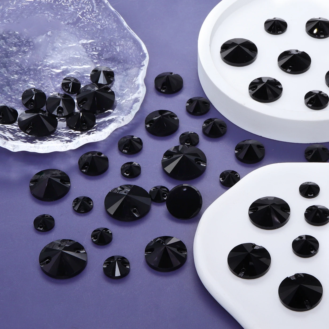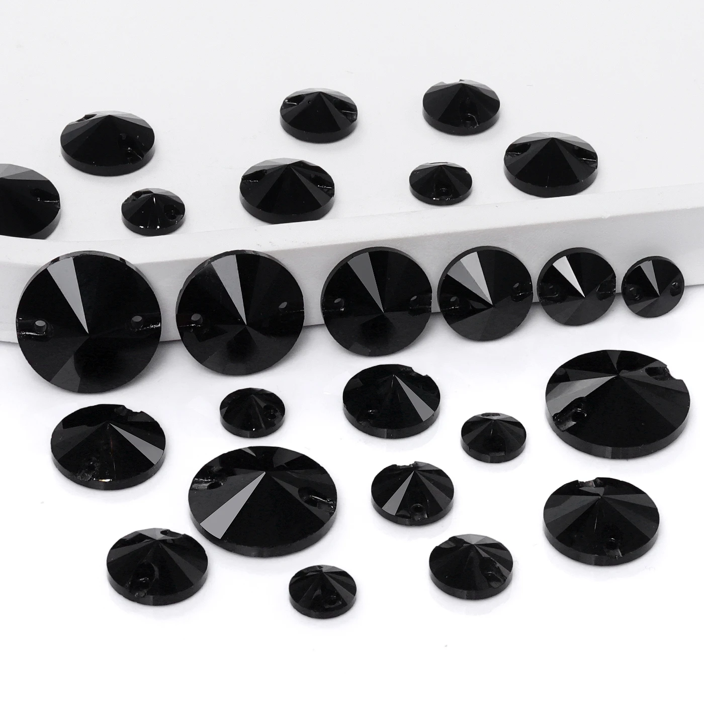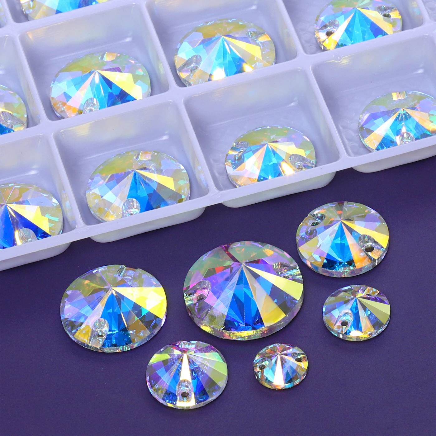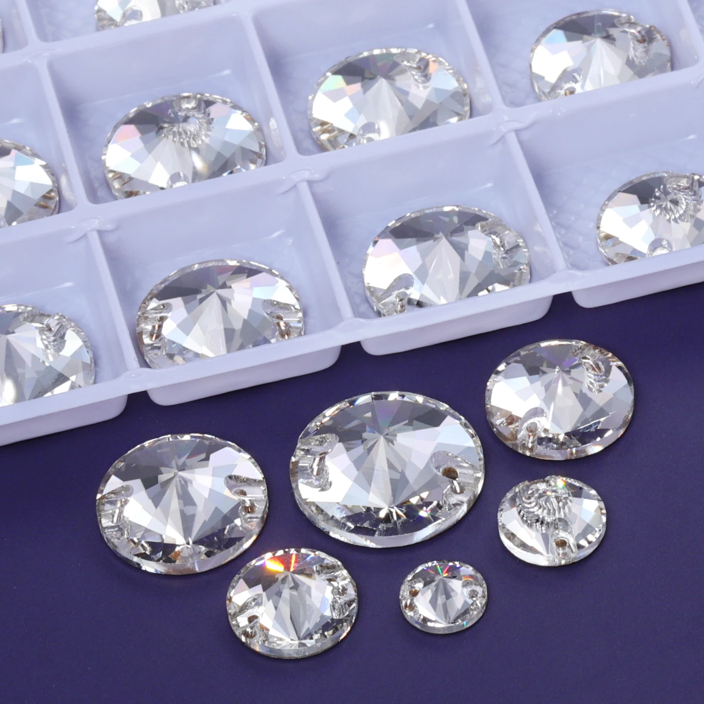 2025 Eco-Friendly Mixsize Rivoli Shape K9 Glass Crystal Rhinestones with Two Holes for Garment Accessories