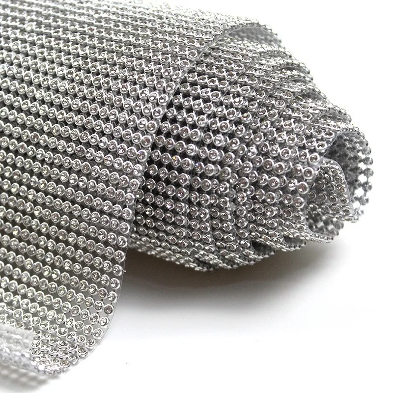 45*120cm 3mm SS12 High Quality Glass Crystal Hot Fix Rhinestone Aluminum Mesh Metallic Adhesive Sheets for Dancing Garment