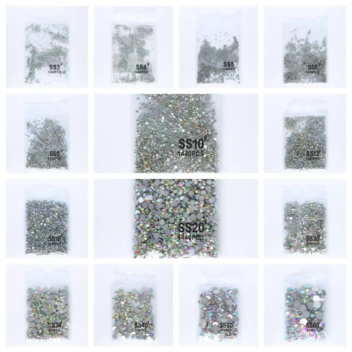 ss30-ss34:288pcs/bag ss40-ss50:144pcs/bag Bags or paper packing for choose, also accept the custom-made