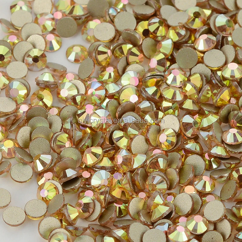 QY Golden Back Glass Rhinestones Non Hot-Fix Round Glitter Crystal Flatback Rhinestone 3D Nail Art Decorations