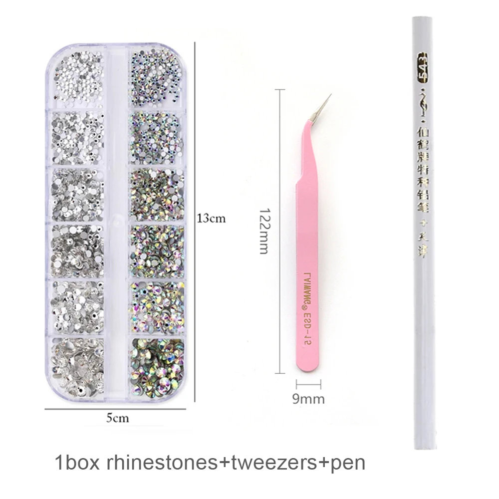 3pcs/set 3D Nail Art Rhinestones Multi Size Nail Decorations With tweezers and pen Mixed Size Crystal Gems DIY Nails Accessories